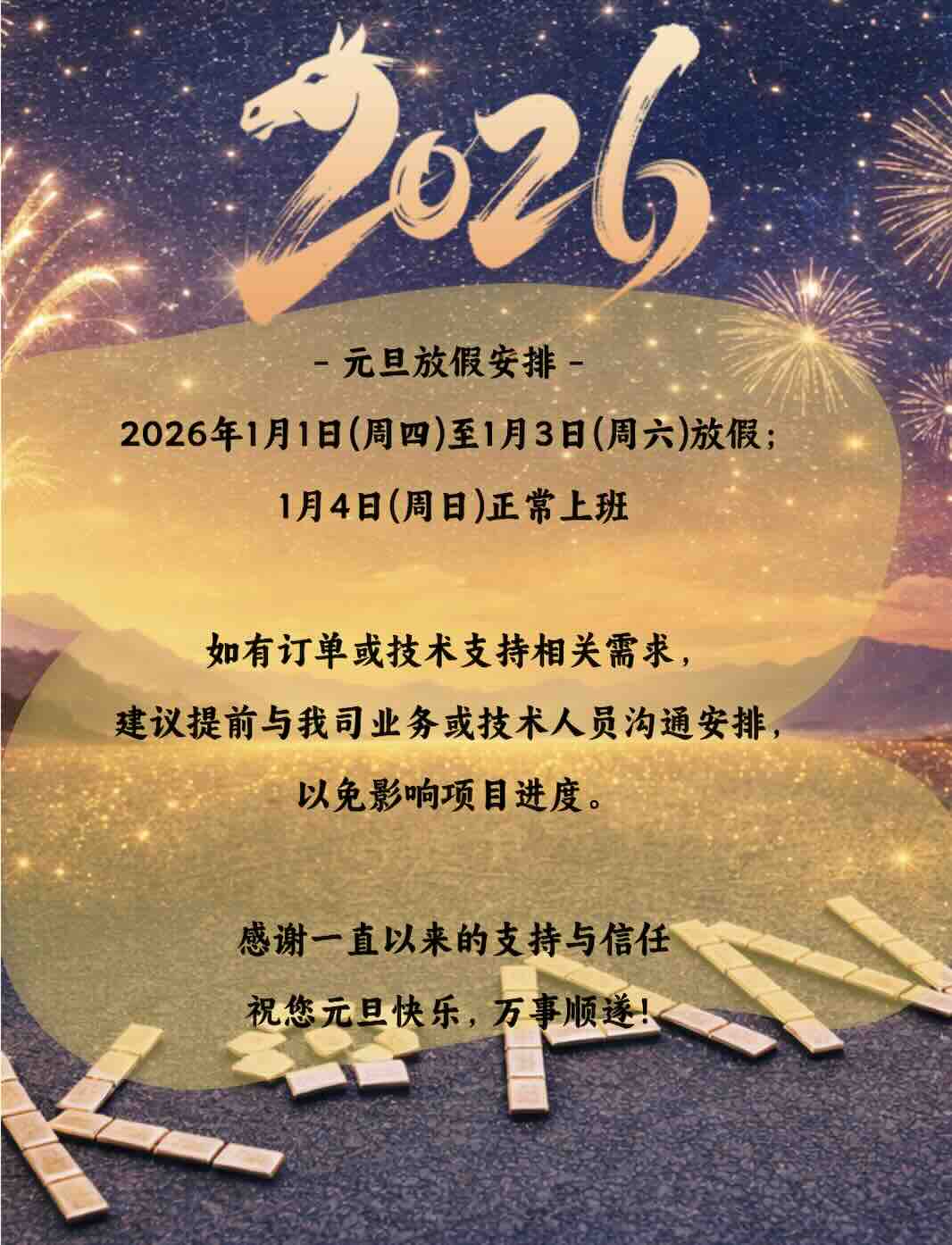 2026年元旦放假通知:1.1~1.3