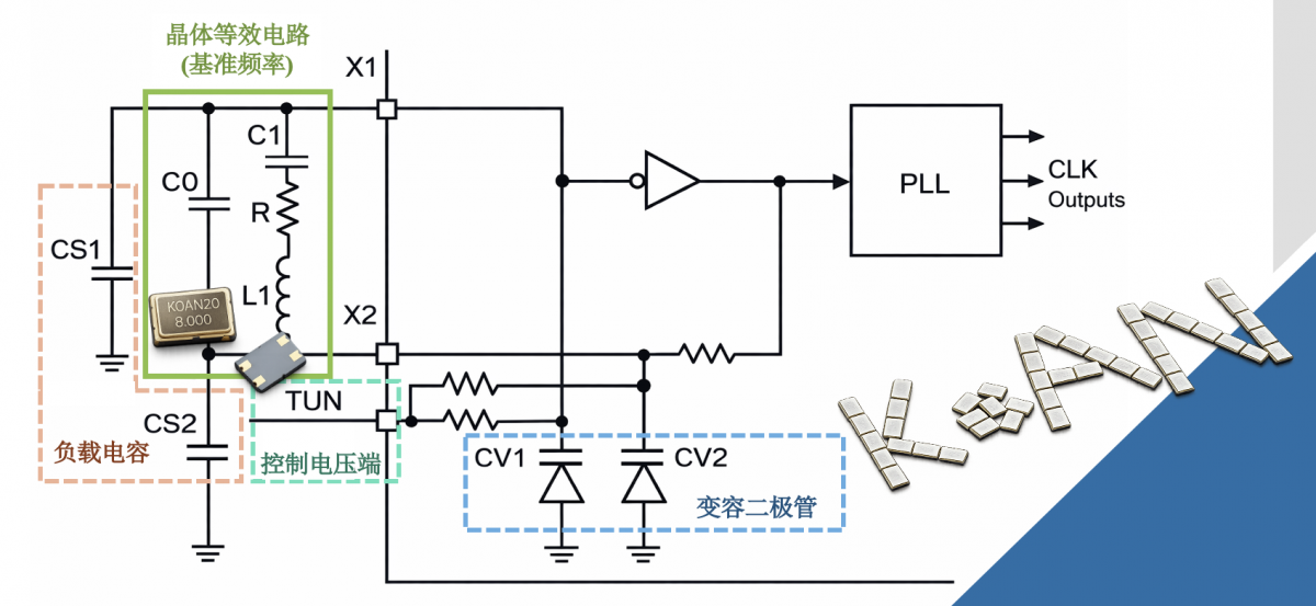 基于晶体振荡器的压控型晶体,晶体固有频率非常稳定。控制电压作用在晶体的负载电容上,实现微调。调节范围小,但频率非常精确稳定。可应用在如下场景:精密时钟同步(如以太网、SDH/SONET)、高精度数据通信时钟、锁相环中的参考时钟微调、需要高稳定性、低抖动、窄频率调节的场景……